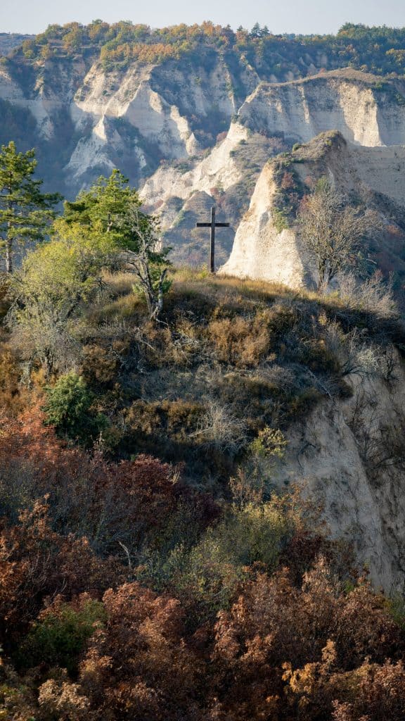 Outside the caves, the Buynovo Gorge winds like a canyon through pine forest. In autumn, it glows in copper and gold.