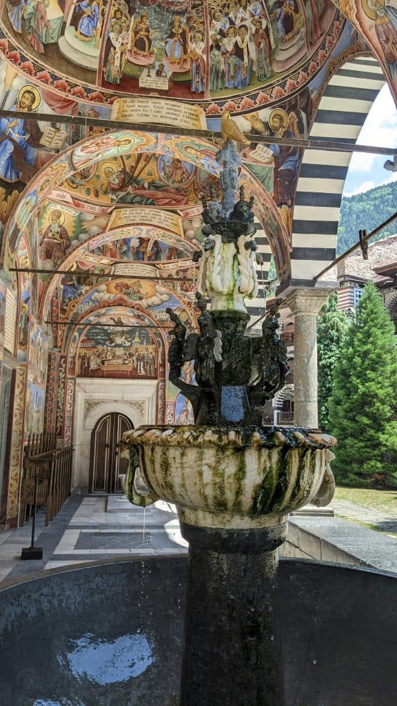Rila Monastery is Bulgaria’s most famous, and with good reason. It’s enormous, ornate and beautifully located in a pine-covered valley. Striped arches, swirling frescoes, and thick wooden balconies circle the courtyard like something out of a fairytale.